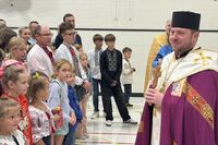 At the end of the service, Bishop Mykola sprinkled holy water on all those present, blessing the students, parents, and teachers for a successful school year.