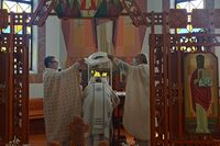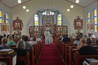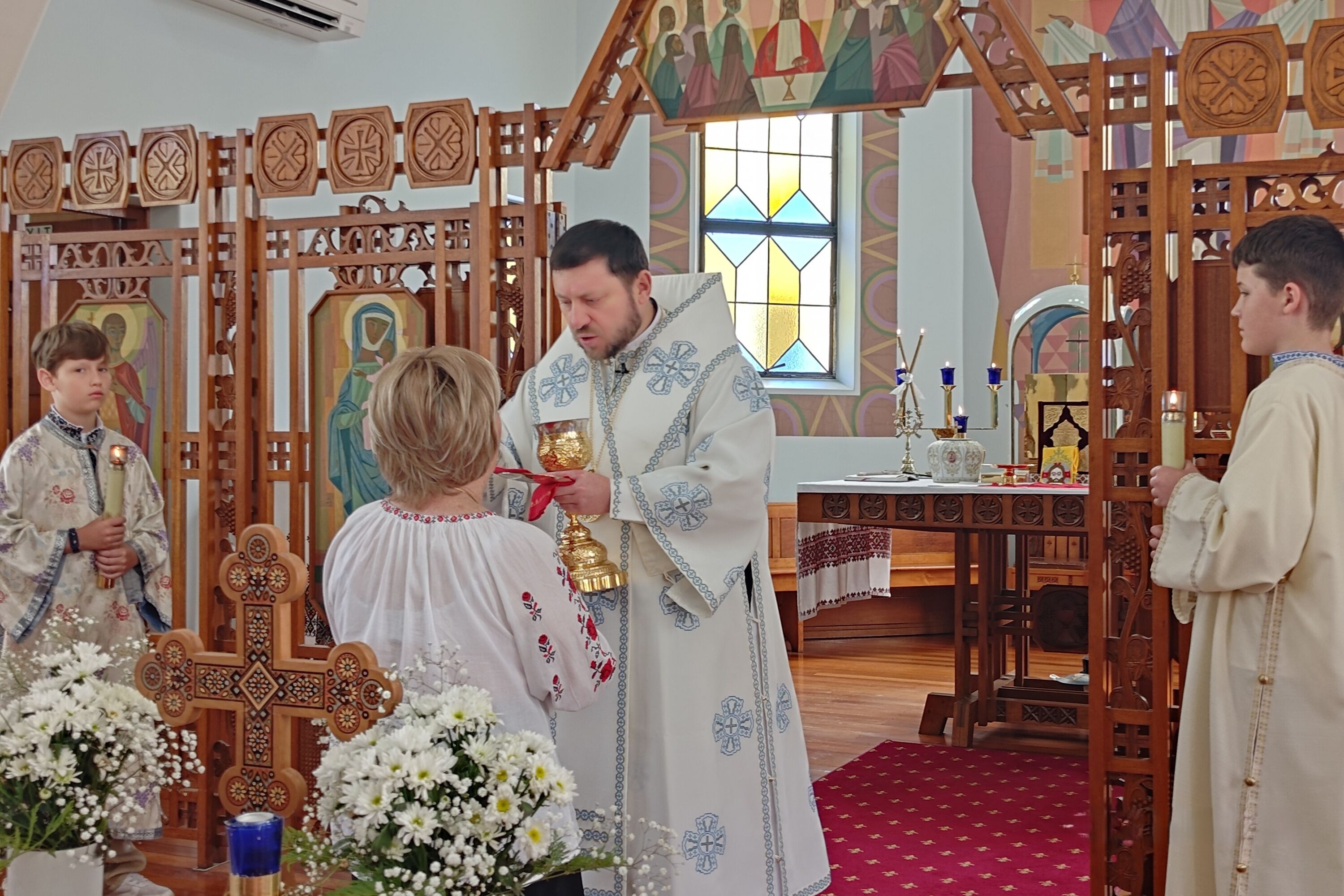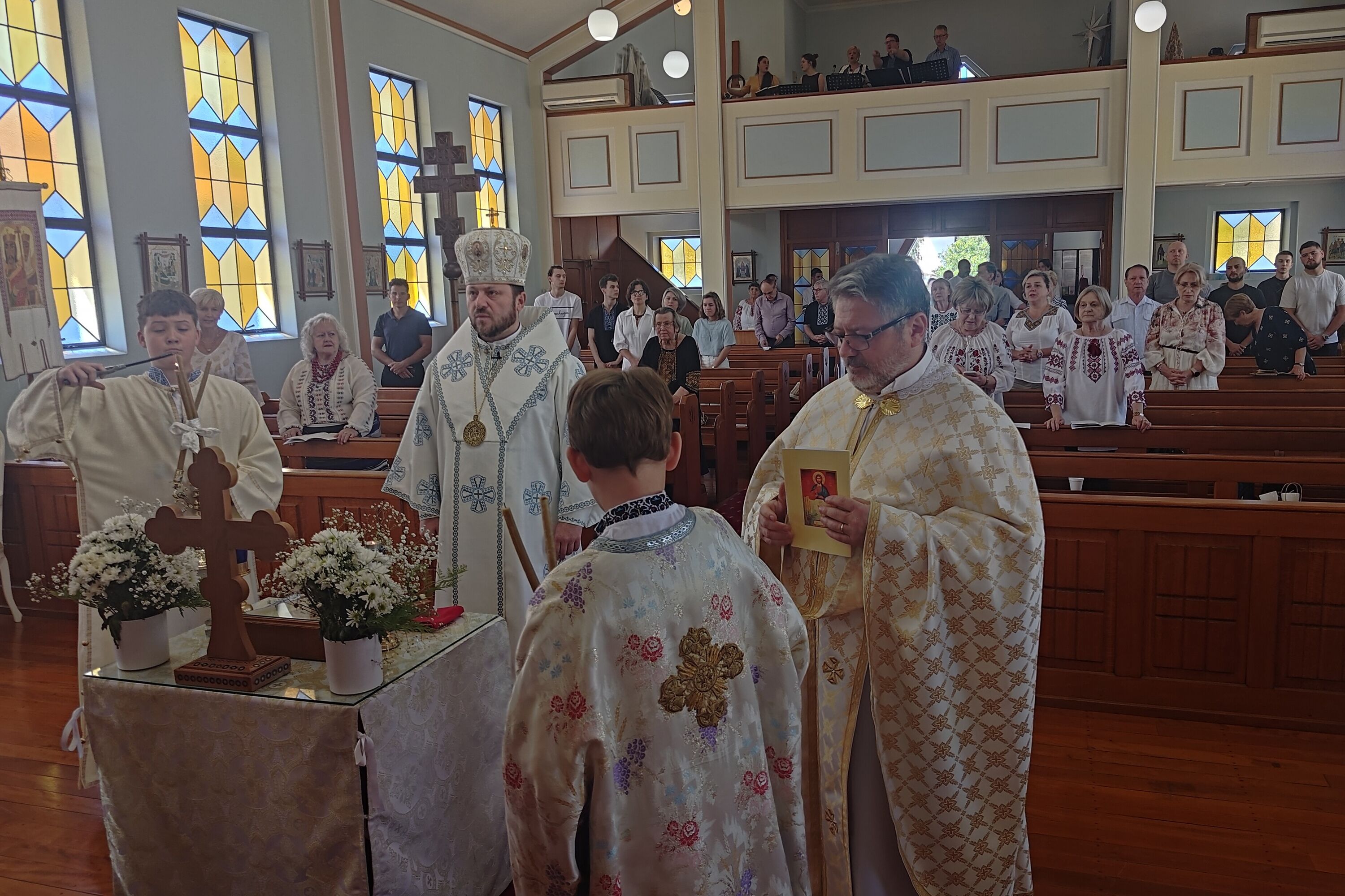 The Hierarchical Divine Liturgy was led by His Eminence Mykola Cardinal Bychok, Eparch of Melbourne, who had arrived in Brisbane a few days earlier on a pastoral visit. The bishop was concelebrated by Fr. Stefan Sapun, parish administrator, and Fr. Martin Arnold.