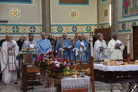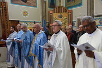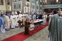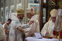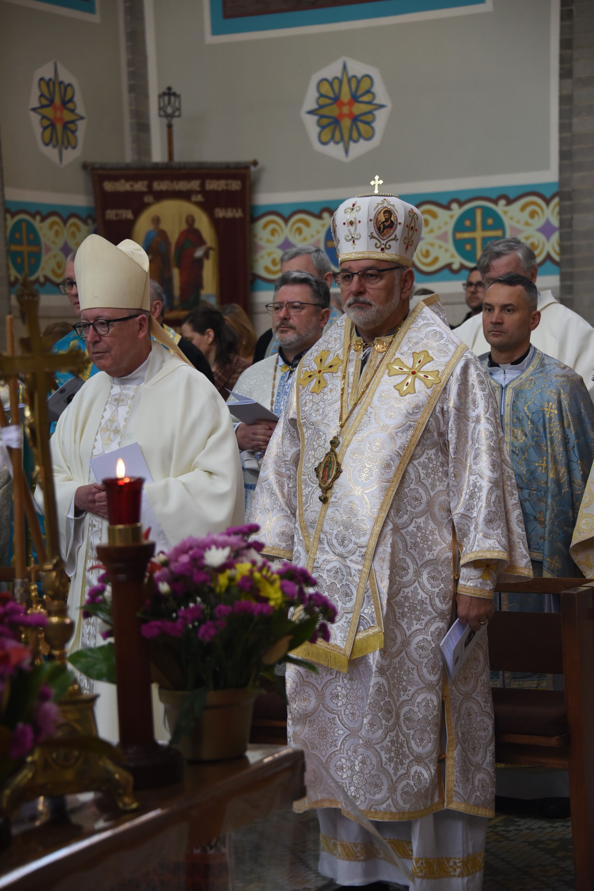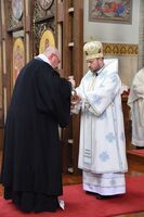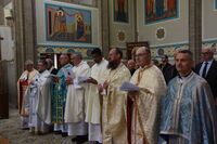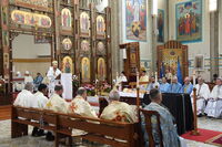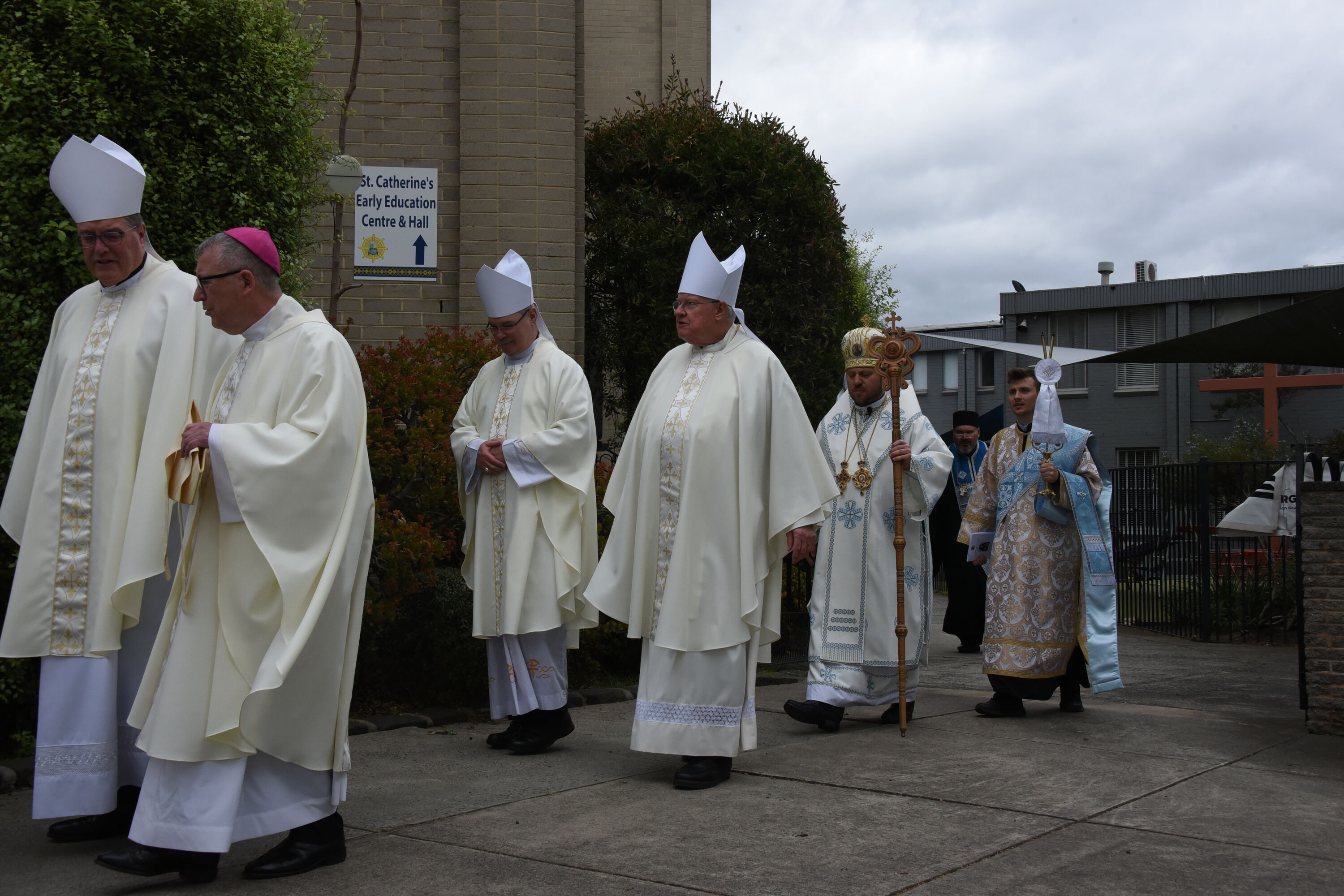 The Hierarchical Divine Liturgy was presided over by Bishop Mykola Cardinal Bychok, Eparch of Melbourne. He was joined by numerous representatives of the Catholic Church in Australia, including Archbishop Charles Balvo, Apostolic Nuncio to Australia; Bishop Peter Comensoli, Archbishop of the Archdiocese of Melbourne; Bishop Michael McKenna, Bishop of the Diocese of Bathurst; Bishop Greg Bennett, Bishop of the Diocese of Sale; Bishop Paul Bird, Bishop of the Diocese of Ballarat; Bishop Emeritus Terence Curtin; Fr. Chris de Souza, General Secretary of the Australian Catholic Bishops Conference; and Fr. John Hodgson, Provincial of the Redemptorist Congregation of the Province of Oceania.