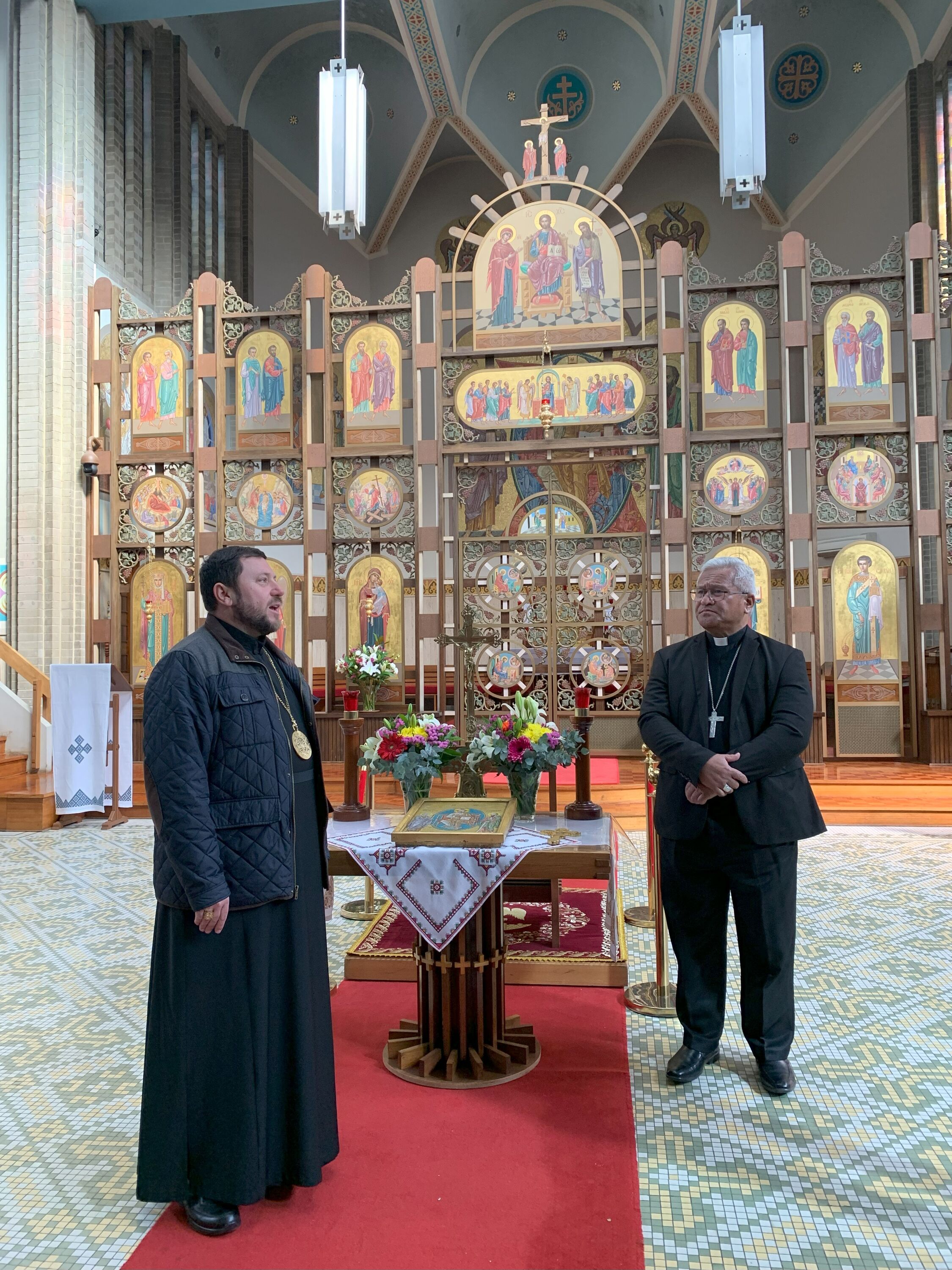 Bishop Mykola Cardinal Bychok, welcomed the guests in Melbourne. During the visit, they toured the Cathedral of the Sts Peter and Paul, and also visited the Eparchial Museum. In a relaxed and warm atmosphere, the bishops shared their experiences of pastoral ministry and spoke about their dioceses and the people they serve.