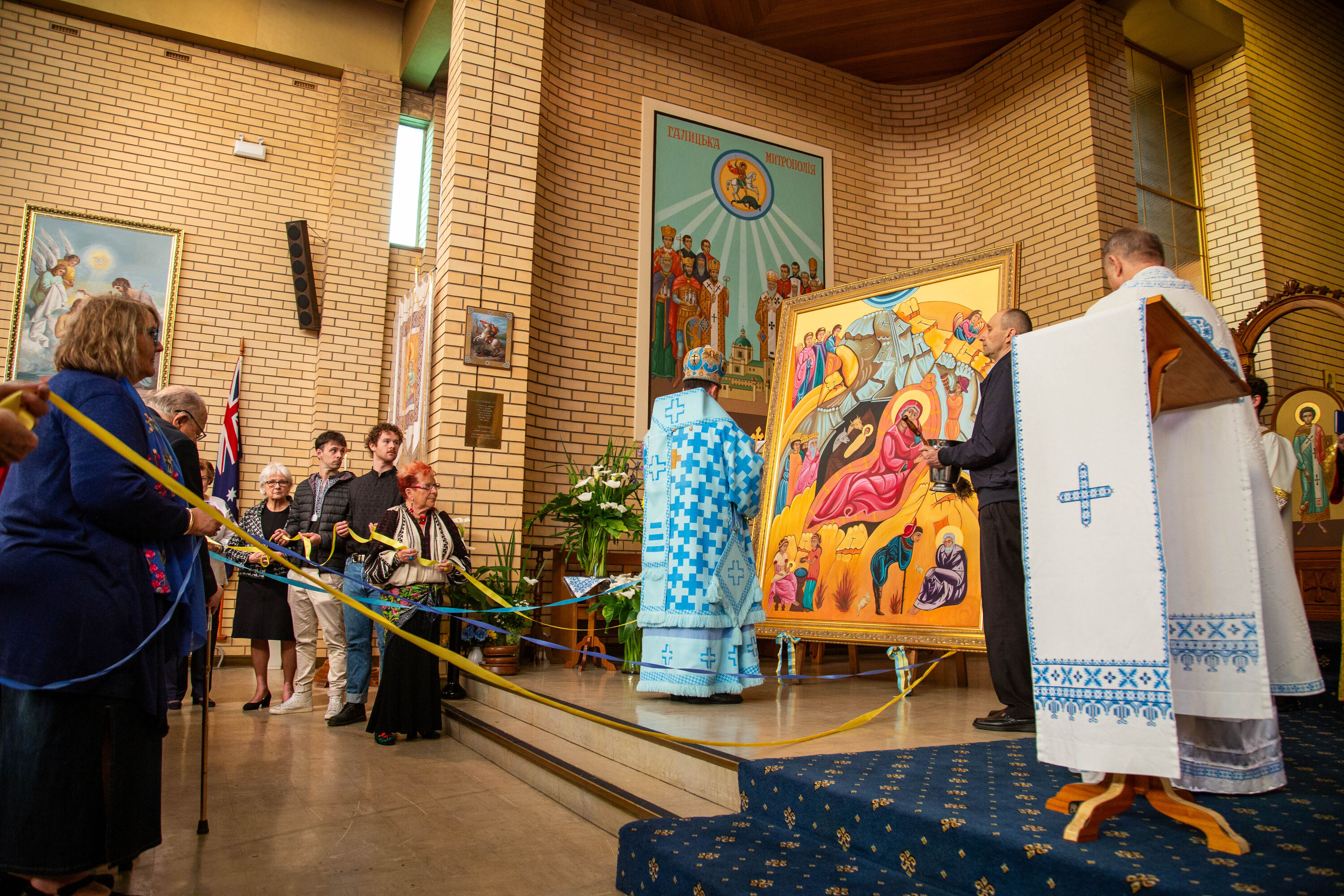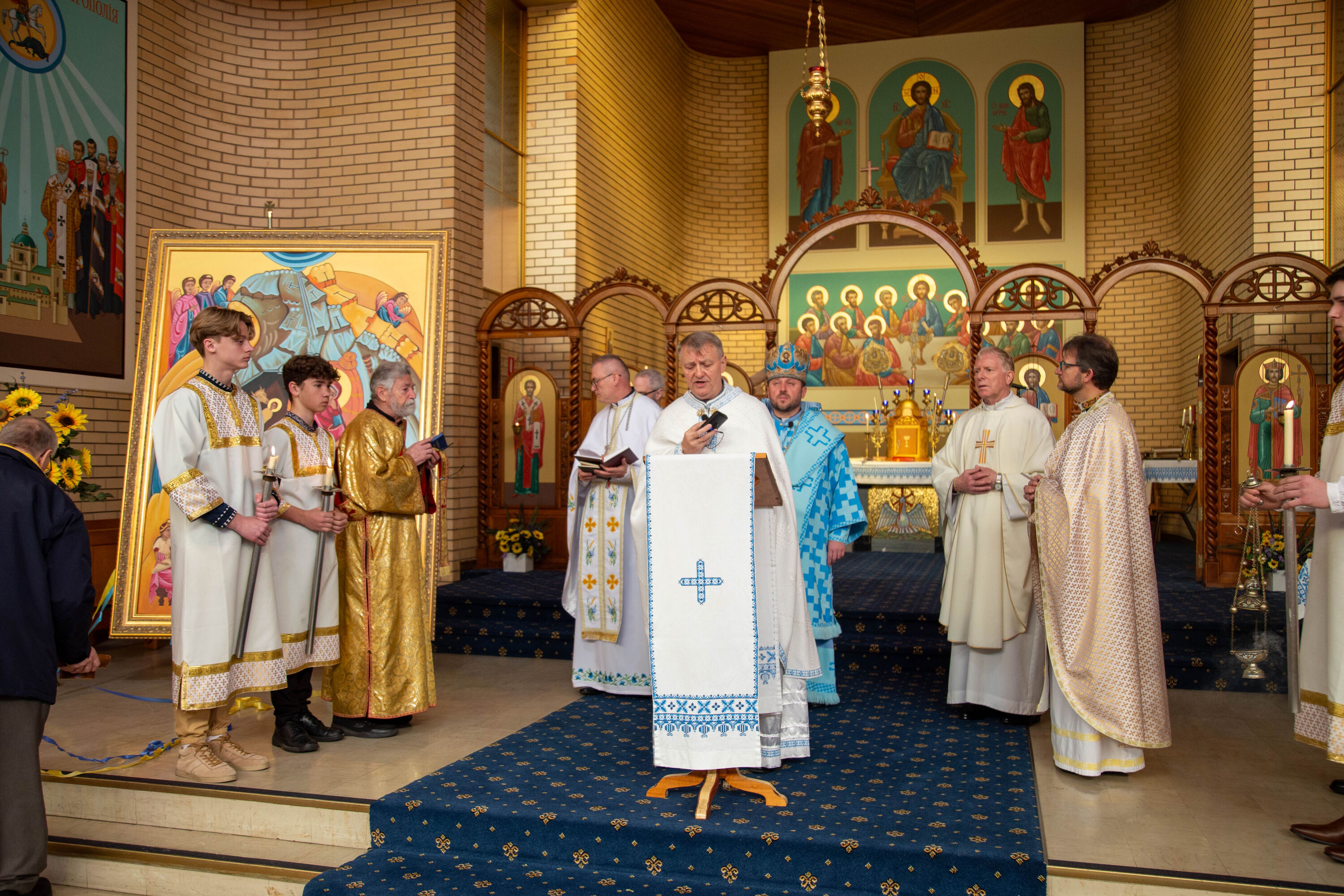 Архиєрейську Божественну літургію очолив владика Микола кардинал Бичок, єпарх Мельбурнський, у співслужінні з о. Ігорем Головком, синкелом духовенства Мельбурнської єпархії, о. Тарасом Горпиняком, адміністратором парафії Покрову Пресвятої Богородиці у Вейвілі, о. Зеноном Рацьким, адміністратором парафії свв. Володимира і Ольги у Вудвілі, о. Діном Маріном, Генеральним вікарієм Аделаїдської Архидієцезії, о. Павлом Бабієм та дияконом Володимиром Демчинським.